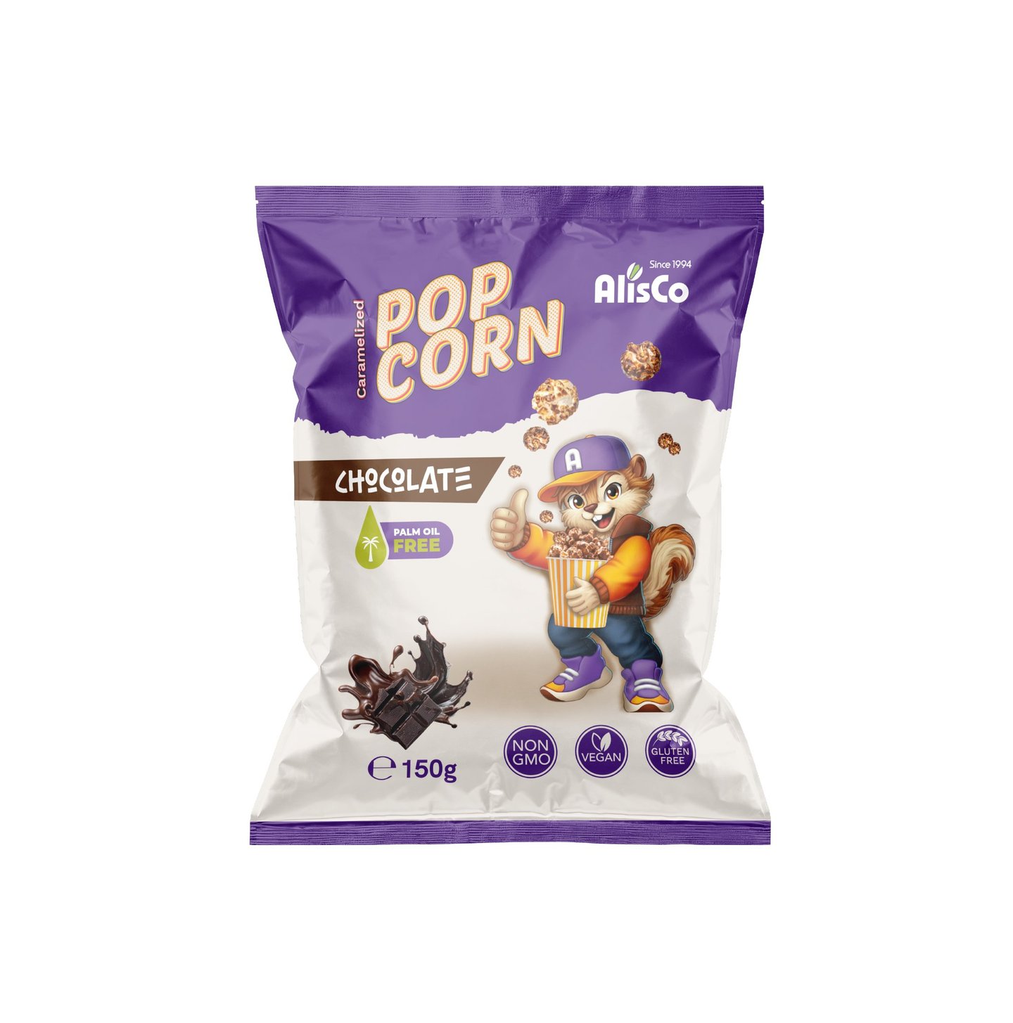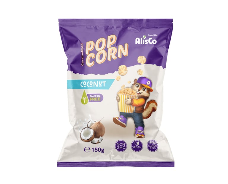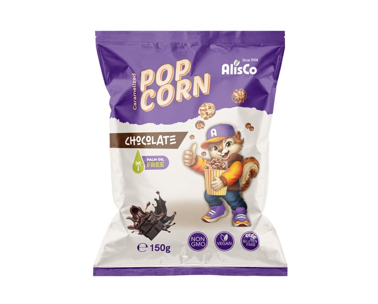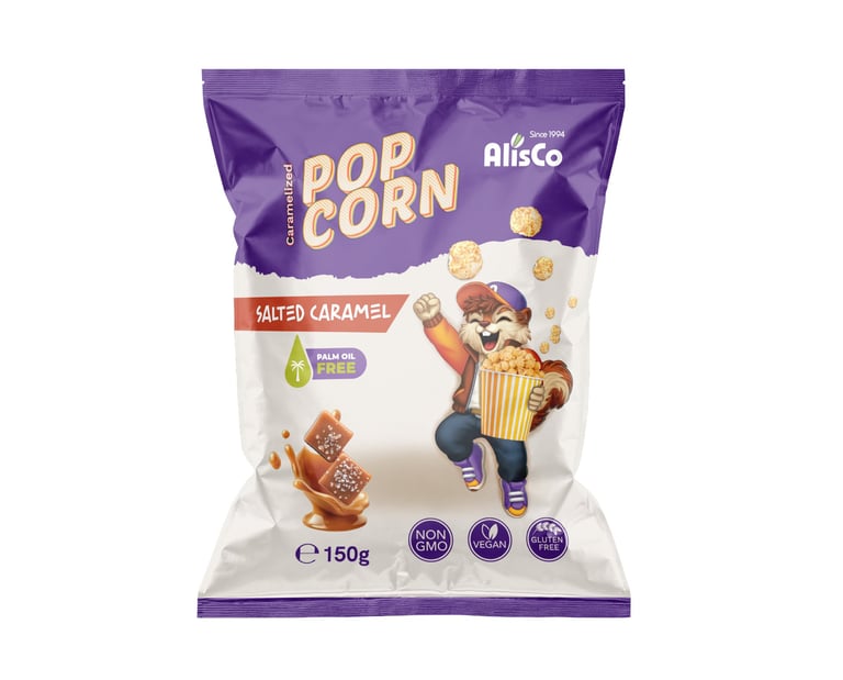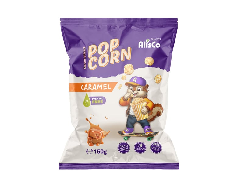 Žaismingas aukščiausios kokybės spragintų kukurūzų pakuotės dizainas, sukurtas vaikams ir paaugliams. Koncepcijoje pavaizduotas juokingas burundukas, laikantis kibirėlį spragintų kukurūzų, suteikiantis prekės ženklui individualumo ir žaismingumo.