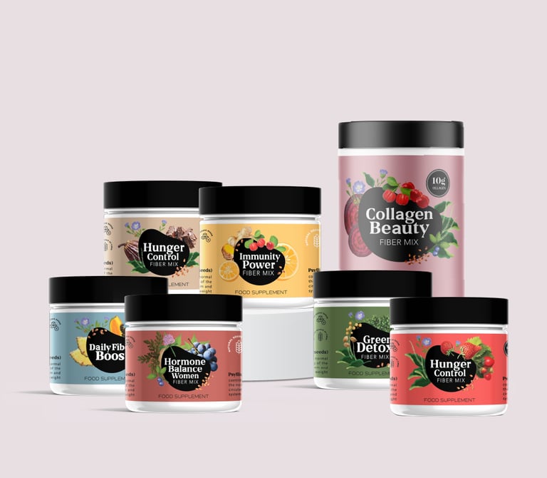 Mūsų skaidulinių medžiagų papildai yra ryškiame šešių indelių rinkinyje, kurių kiekvienas praturtintas gardžiais vaisių skoniais. Spalvinga etiketė, sukurta siekiant šviežumo ir paprasto naudojimo, atspindi natūralią produkto vertę.