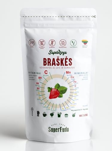 Ekologiški natūralių uogų milteliai labai išpopuliarėjo, nes tai patogus būdas ištisus metus mėgautis maistingų medžiagų turinčiais uogų privalumais. Nors ekologiškų natūralių uogų milteliai turi didelę naudą sveikatai, jų sėkmė labai priklauso nuo apgalvotos pakuotės ir prekės ženklo. Pakuotė išsaugo gaminio vientisumą, o tvirtas prekės ženklas perteikia vertybes ir patikimumą, kurių siekia šiandieniniai sveikata besirūpinantys vartotojai.